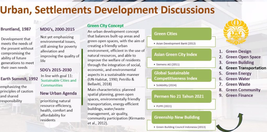Konsep ini sejalan dengan kebijakan nasional seperti Permen PUPR No. 21 Tahun 2021 serta target global SDG 11: Sustainable Cities and Communities.